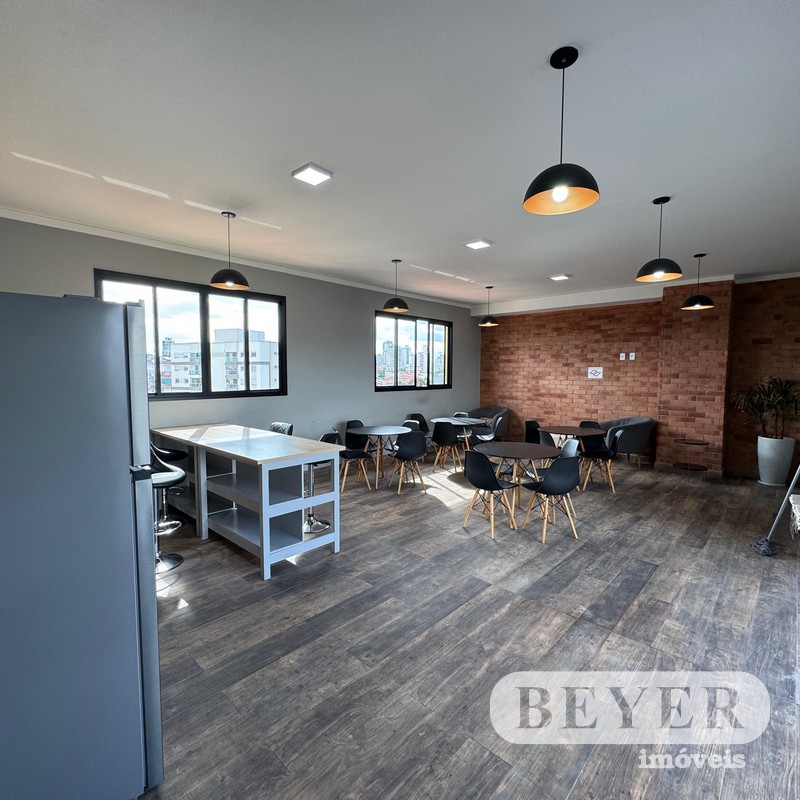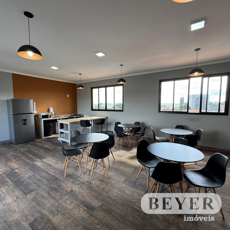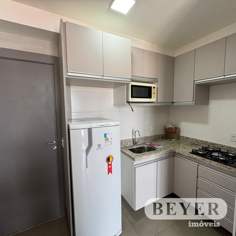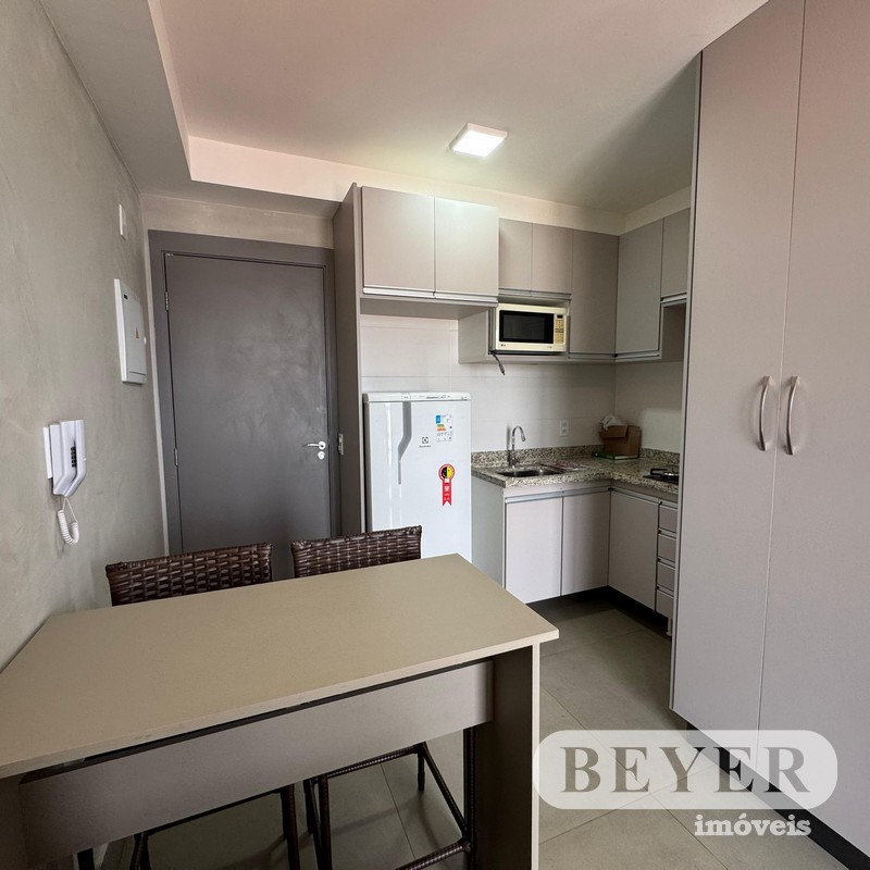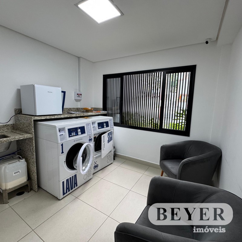 1 Dormitório com Armários/Suíte, Sala Conjugada com Cozinha e Varanda, Área Gourmet com Churrasqueira, Lavanderia/Franquia.